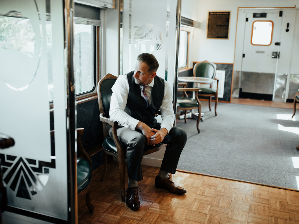 Okay, if the staircase photo above hasn't convinced you to drop everything and run, not walk to book Estate on the Halifax as your venue, then please see below photos of the groomsmen getting ready space. Because it's on a freaking train!! Like, what??